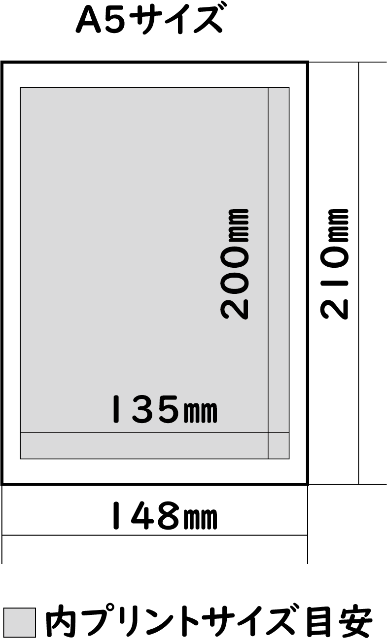 A5サイズプリントの最大サイズ、料金の目安です。